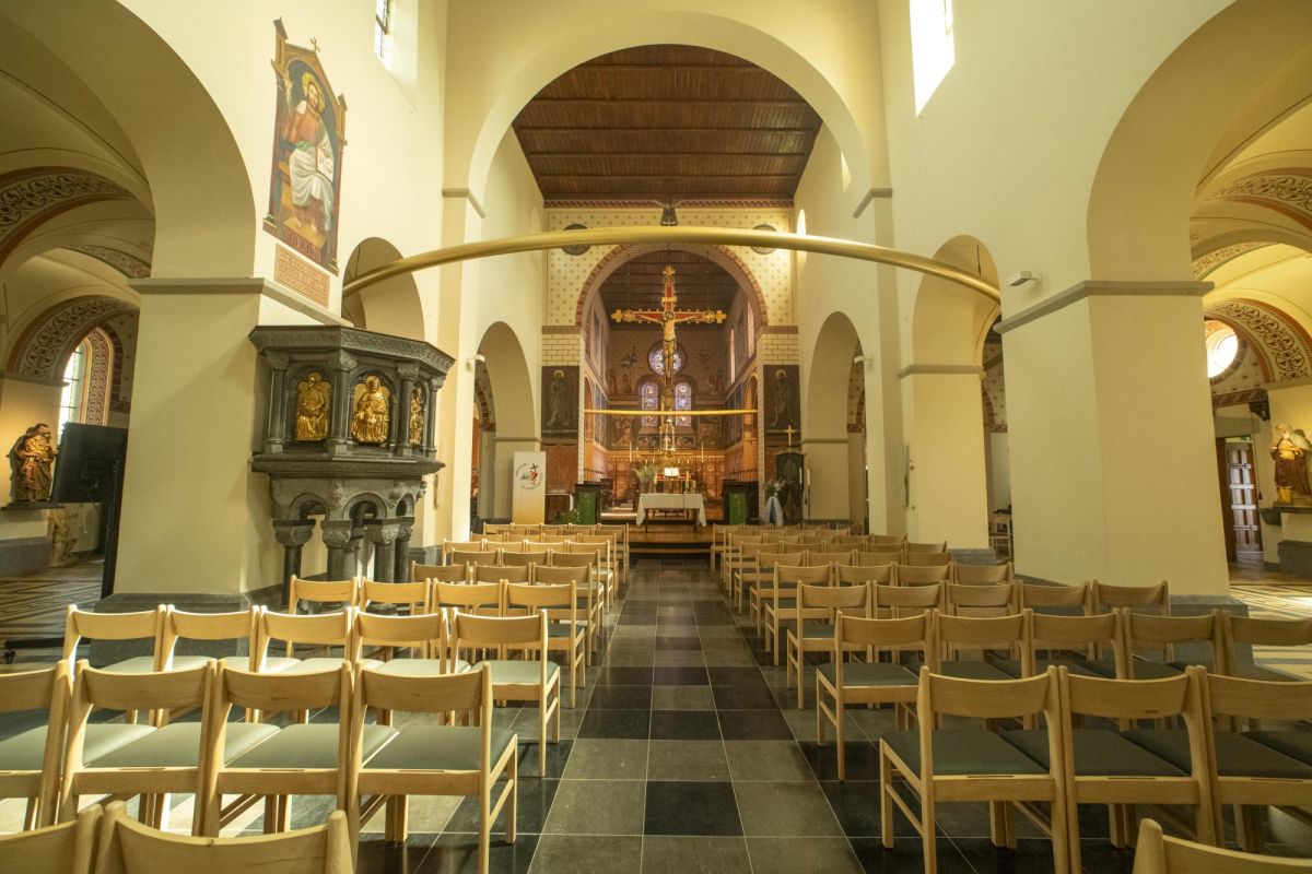 In den Jahren 1903-1904 wurde sie stark renoviert und in neoromanischem Stil erweitert. Die Kirche hat ihre schlichte romanische Atmosphäre behalten und besitzt zahlreiche Schätze: einen Triumphbogen, mehrere Fresken, ein Chorpult, der Kloster... Die Beichtstühle und andere Einrichtungselemente sind in Lütticher Stil. Das Chorgestühl mit 27 maskengeschmückten Stühlen ist eine barocke Schreinerleistung eines örtlichen Handwerkers (17. Jh.).