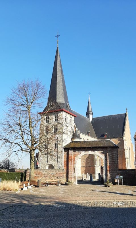 heilige Genoveva von Paris verehrt wurde. Das St.-Servatius-Kapitel von Maastricht ließ in dieser westlichsten „Bank“ eine auffallend schöne Kirche errichten. Aus dem 12. Jahrhundert ist noch der spätromanische Westturm mit einem spätgotischen Kirchenschiff aus dem 15. Jahrhundert erhalten. Umfassende neugotische Restaurierung um 1900.