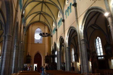 Stroll through Dourlers Church and admire the decorative details: murals, stained glass windows, statues...