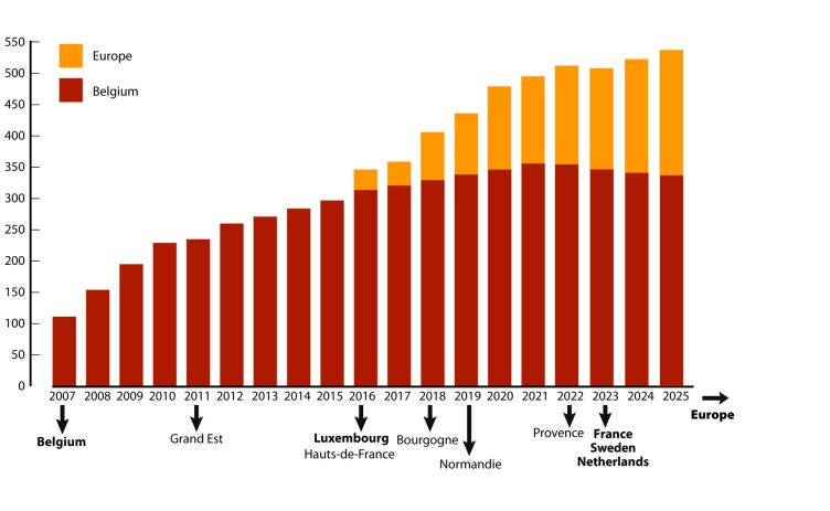 Today the network has been deployed in Belgium, France, Luxembourg, the Netherlands and Sweden.