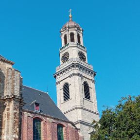 Collégiale en briques et pierre de Gobertange, créée à l'origine sur la tombe de sainte Ragenufle. La fontaine qui porte son nom est encore aujourd'hui un lieu de pèlerinage.<br>
