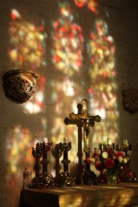 Edicule du XVe siècle, unique au monde, de style gothique flamboyant construit au dos du mur d’enceinte de l’église et qui servait à recevoir les offrandes des pèlerins.