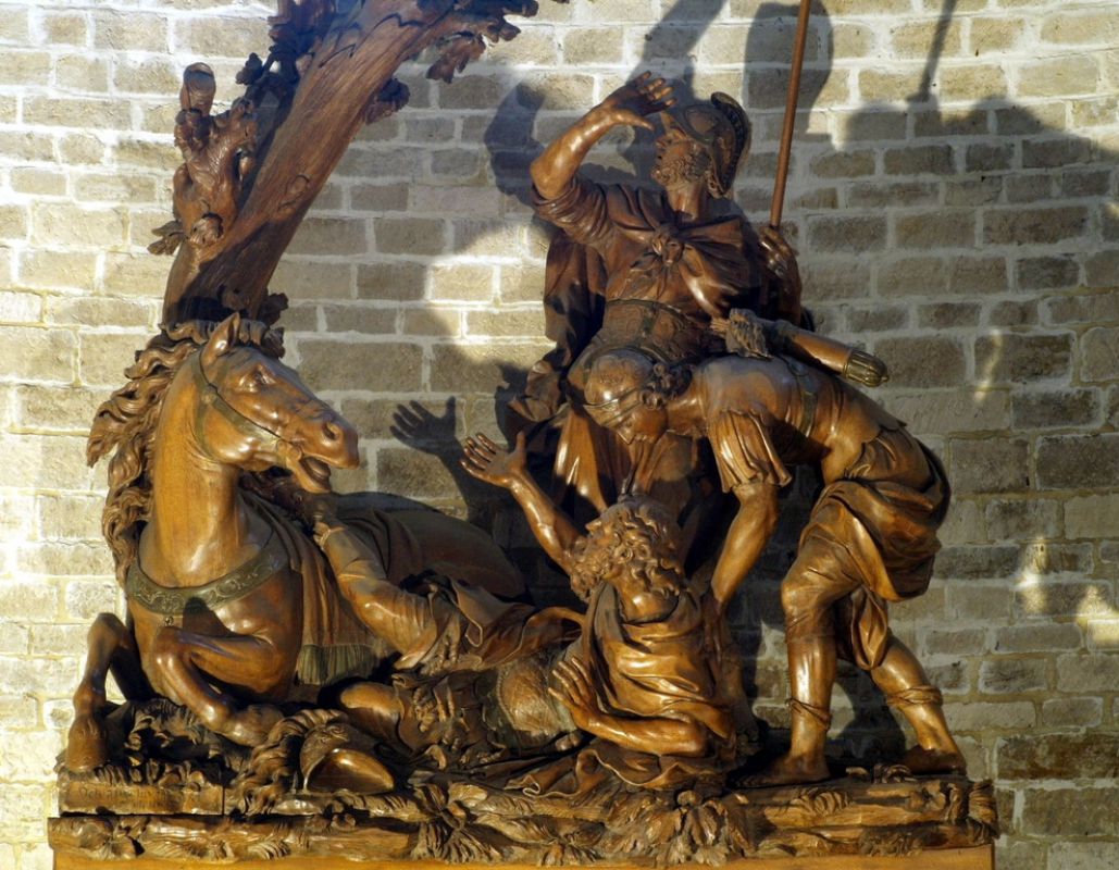 Saint Paul, avant de devenir apôtre évangélisateur, était un grand persécuteur des chrétiens. Sa conversion spectaculaire, sur le chemin de Damas, inspira le sculpteur Laurent Delvaux en 1735. L’œuvre baroque met en scène l'apparition aveuglante du Christ qui le fit tomber de cheval (groupe classé patrimoine mobilier exceptionnel).