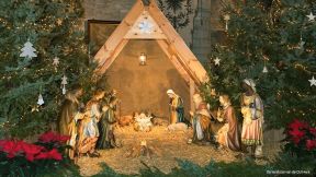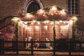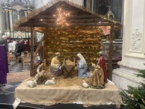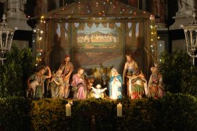 Vrij bezoek, Kerststal in de tuin van de kathedraal