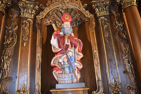 Dit is waarschijnlijk de toegangsdeur tot het klooster, dat zich oorspronkelijk op een andere plaats bevond. In de zoutkelder bevindt zich een beeld van de patroonheilige Nicolaas met kinderen en een medaillon met de data 1774, 1863, 1951, die de bouw en de wederopbouw van de kerk en het klooster herdenken.